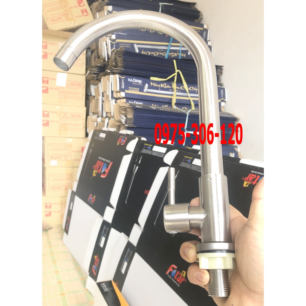 (vòi ổ bi bao không lỏng cần) vòi rửa chén bát lạnh INOX 304 N5011 FOTAR xoay 360 độ dùng cho 2 hộc chậu