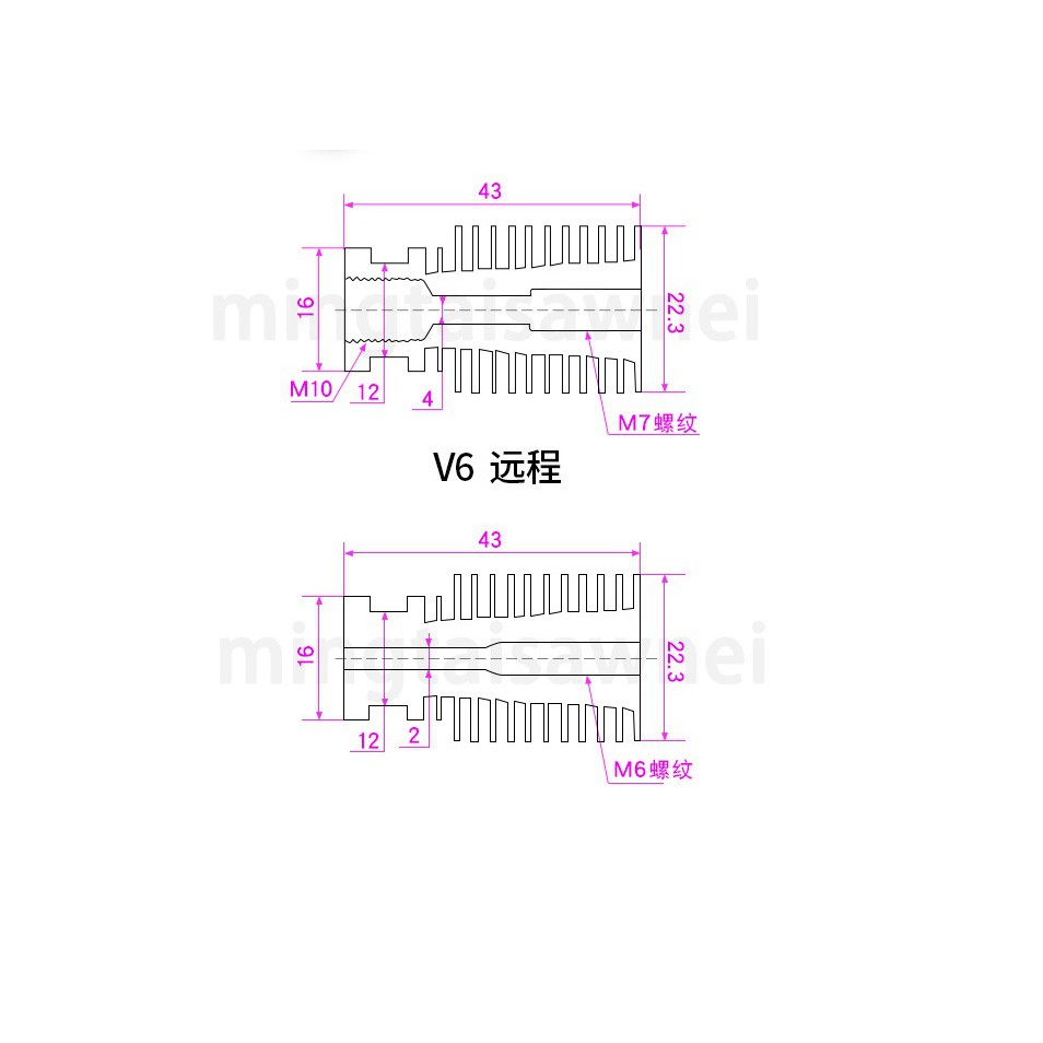 V6 ren 6mm (đùn xa) Lỗ ren trong 6mm