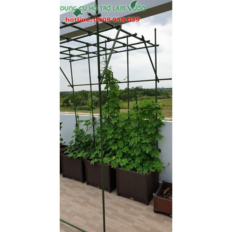 - Cọc thép là lõi thép rỗng bên trong và bọc nhựa màu xanh bên ngoài, có đường gân để cây dễ dàng leo bám , ngoài ra bạn dùng làm giàn cho cây leo, khung trồng chậu vẫn được nhé