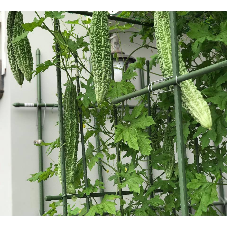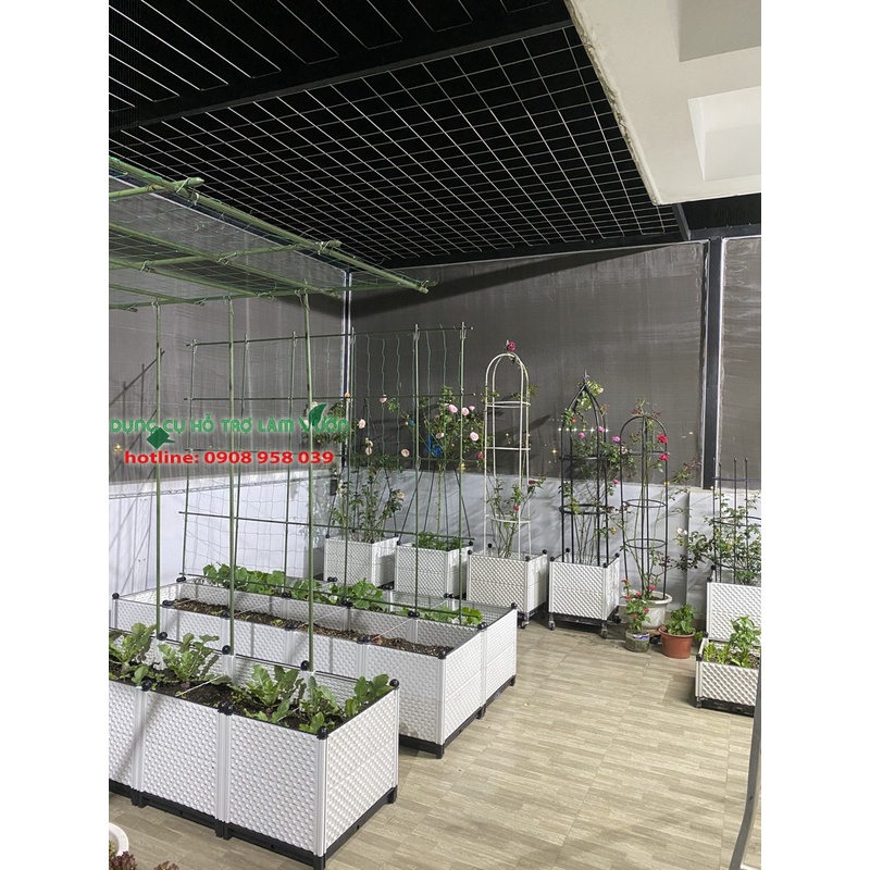 - Ống thép bọc nhựa có màu xanh bắt mắt nên lên vườn nhìn rất thích, tăng động lực làm vườn