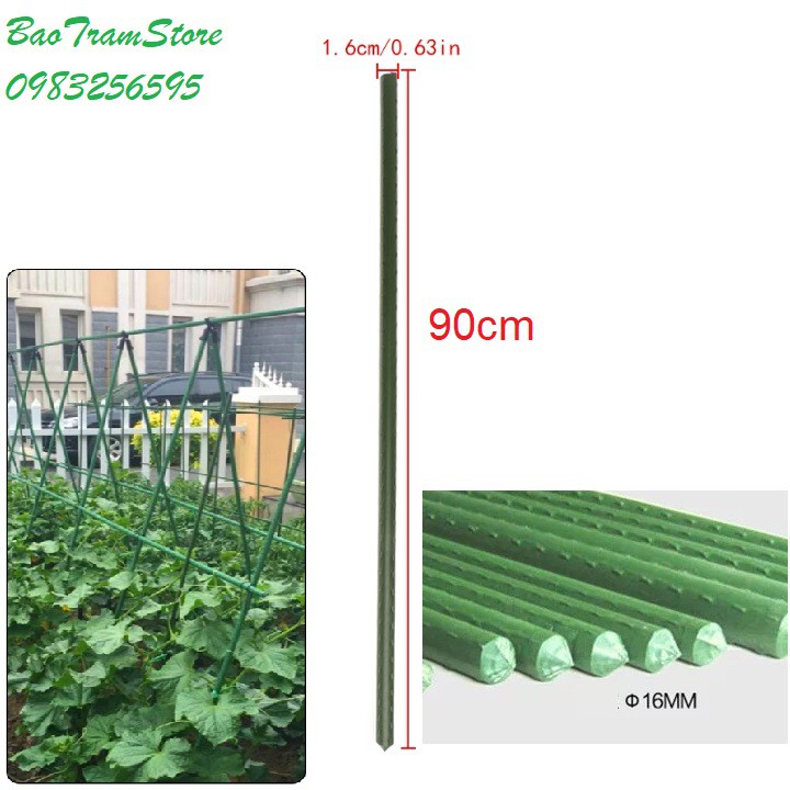 Ống thép bọc nhựa dùng làm cây đỡ hoa hồng, làm giàn cỡ 16mm dài 90cmKích thước: Ống thép phi 16mm dài 90cm