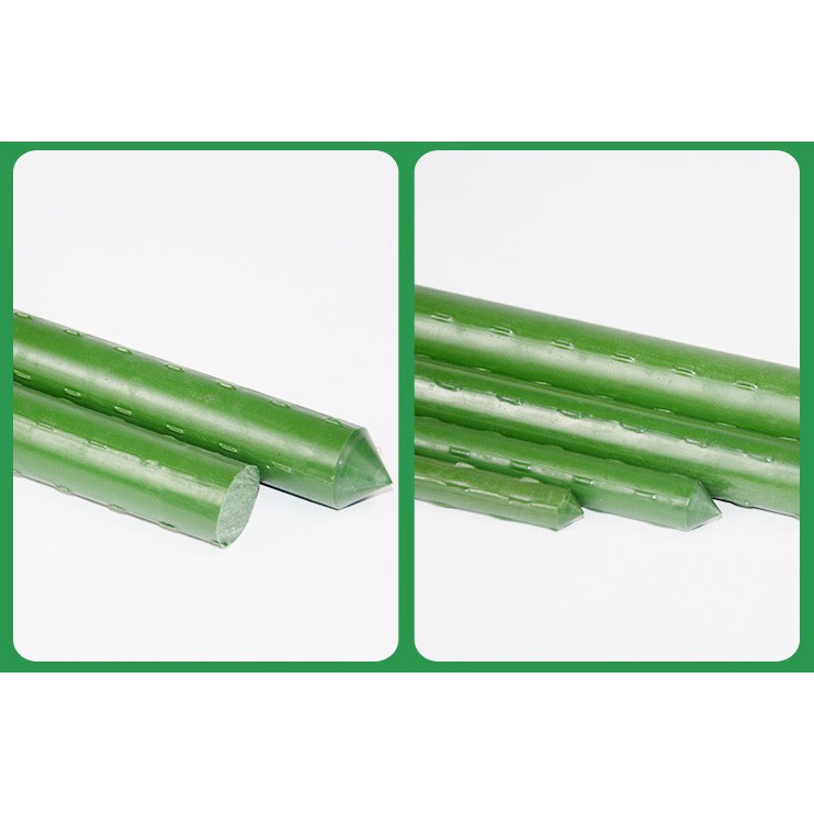 + Sản phẩm chất liệu cốt thép bề mặt bọc nhựa, có các điểm sần giúp cây leo bám và tăng độ bền của cọc.