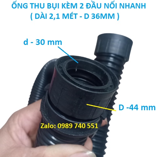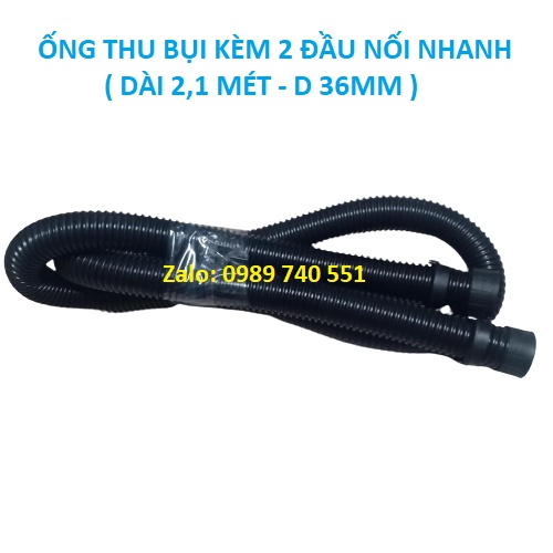 Ống được chế tạo bằng nhựa tổng hợp có kết cấu dạng lò xo và có khớp nối nhanh cho phép kết nối với túi thu bụi một cách dễ dàngỐng thu bụi có chiều dài 2.1 mét và đường kính ống là 36 mm