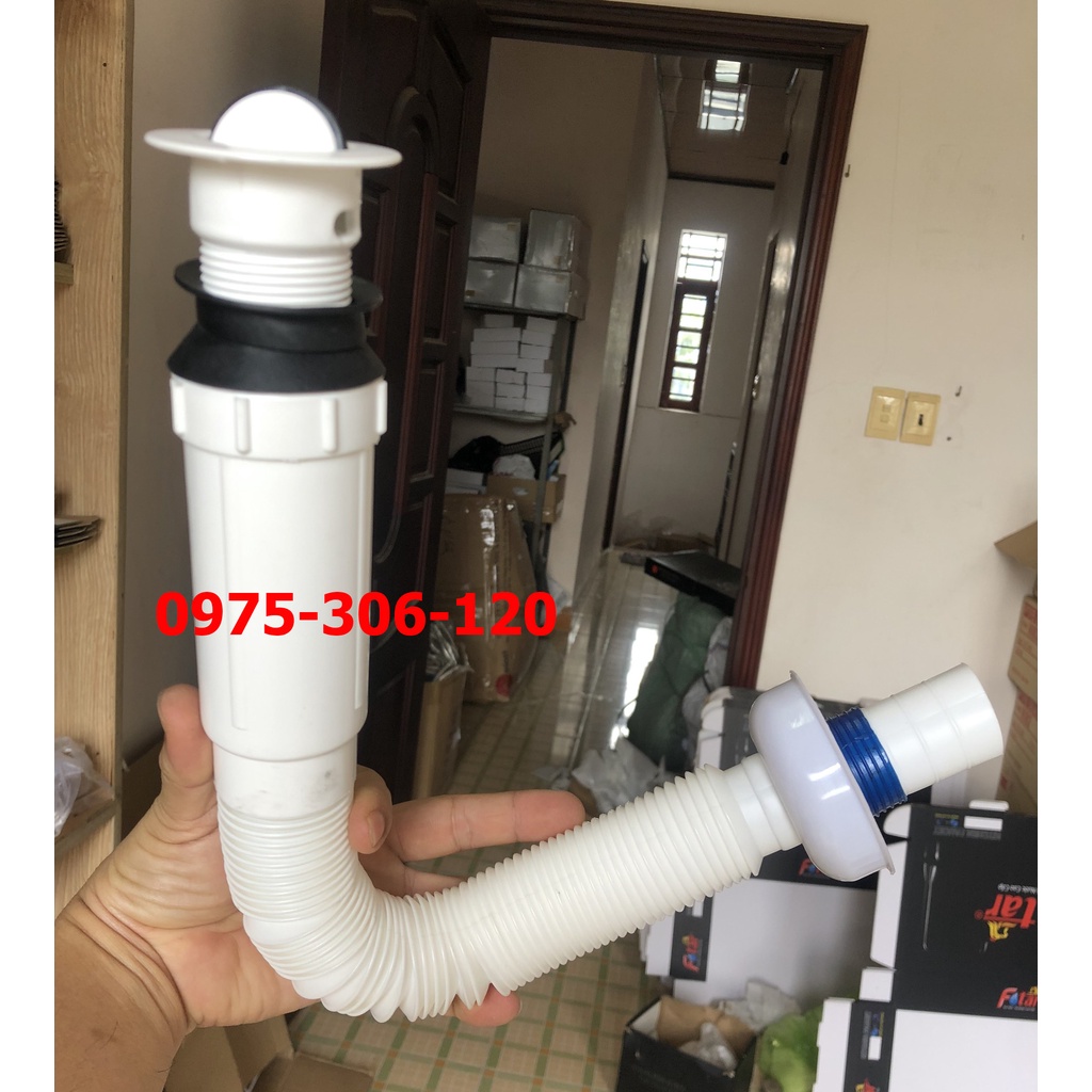 Ống Xả Xi phông Lavabo Bồn Rửa Mặt XẢ RUỘT GÀ kéo dài được chống hôi tốt loại xả to dài dày XẢ LẬT trắng đầu nhựa X06