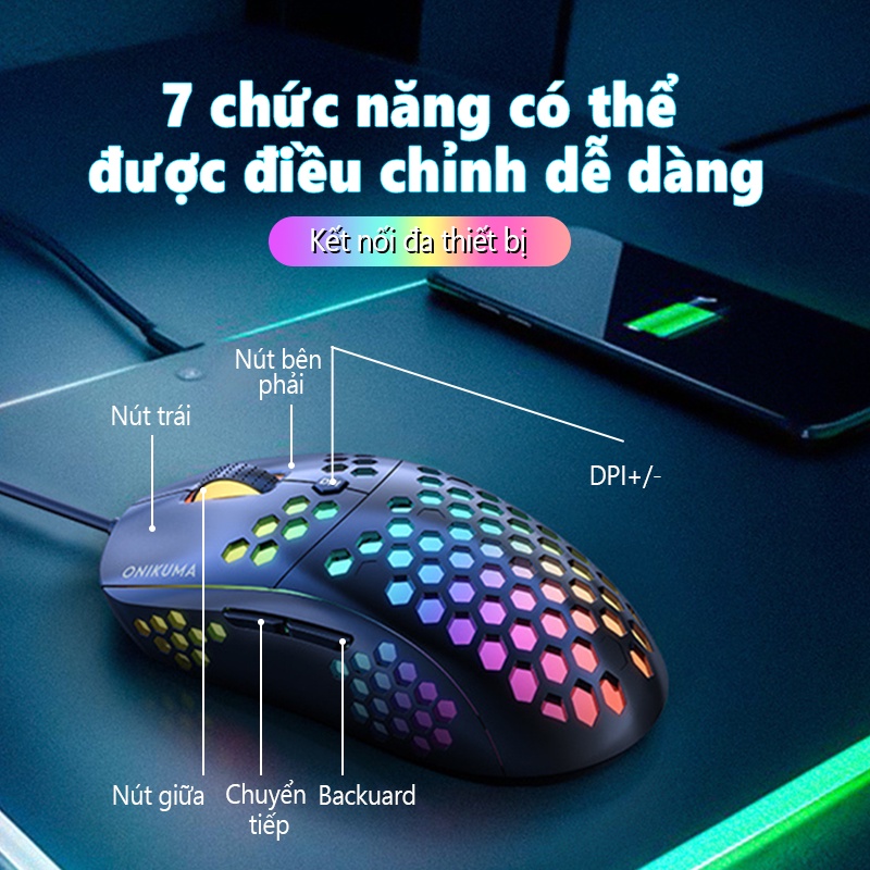 Giới thiệu ONIKUMA CW903 Chuột Chơi Game USB Chuột Chơi Game Có Dây Chống Trượt Sáu Tốc Độ DPI Phát Sáng RGB Có Thể Điều Chỉnh