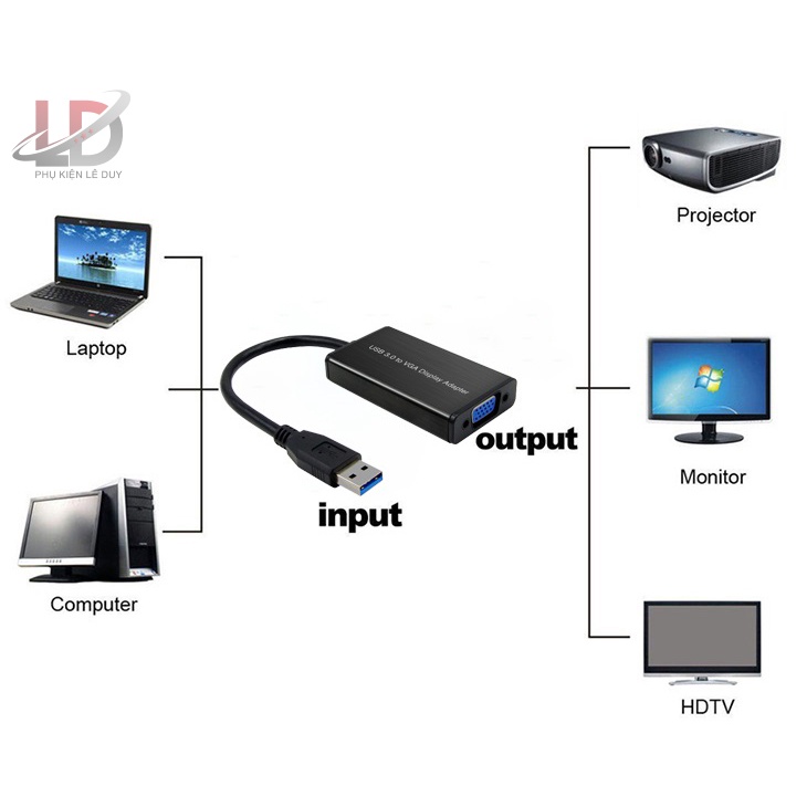 Đầu vào: 1 cổng USB 3.0 (dương) có thể sử dụng với chuẩn USB 2.0 (ở phân giải thấp hơn 800*600)
