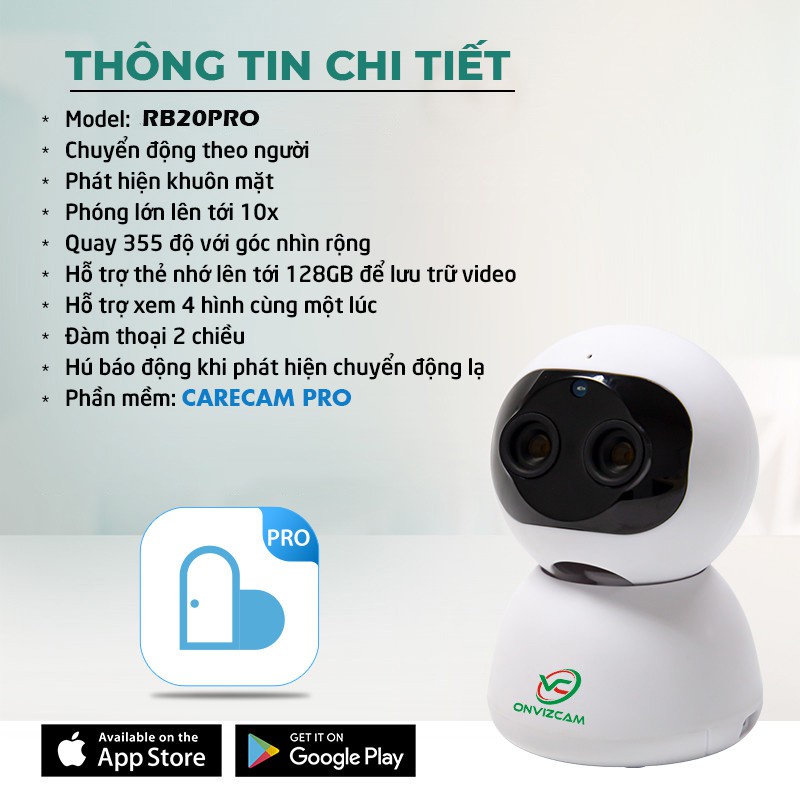Giới thiệu [Onvizcam] Camera WIFI Chính hãng Rb20PRO ĐỘ PHÂN GIẢI 2K SIÊU NÉT, ZOOM 10X, nhận diện khuân mặt, Phát hiện chuyển động