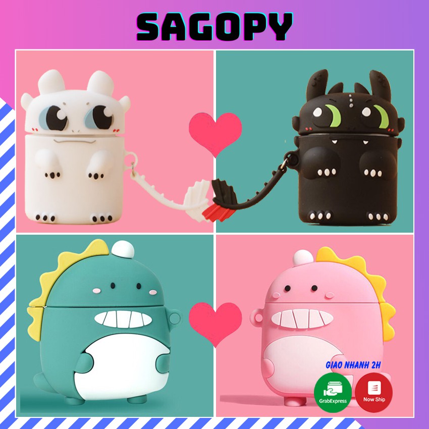 - Thiết kế: silicone cao cấp chắc chắn dày dặn có họa tiết ngộ nghĩnh đẹp lạ: Rồng đen, Rồng trắng, Khủng long hồng, khủng long xanh.