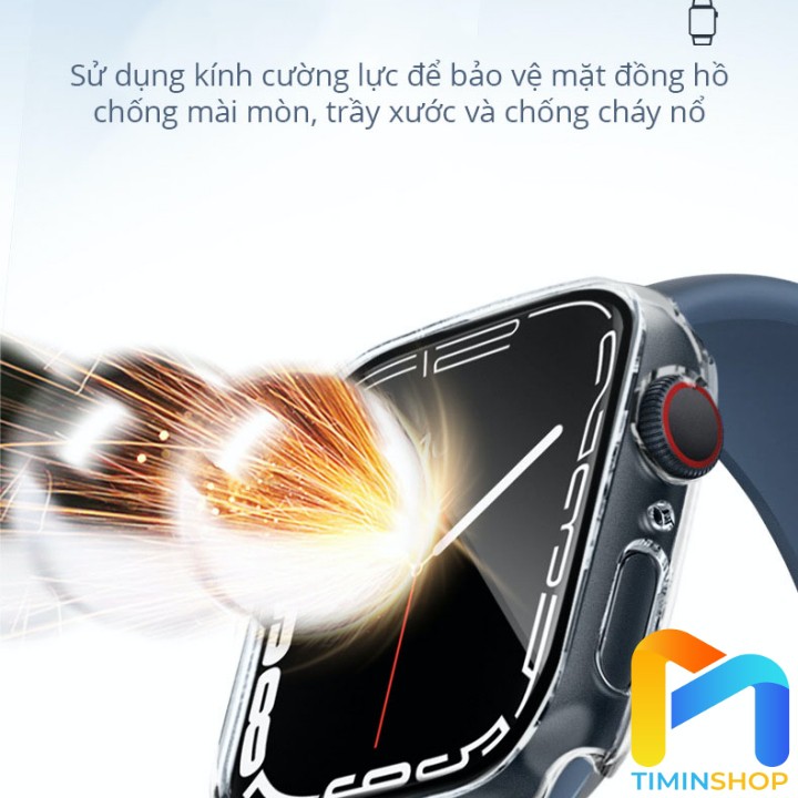 - Ốp Apple Watch series 7 size 41/ 45mm kết hợp kính cường lực- Bảo vệ hiệu quả bởi mặt đồng hồ được bao phủ lớp Kính cường lực giúp chống trầy xước, mài mòn, bể vỡ mặt đồng hồ mà cảm ứng chạm vẫn mượt mà, cạnh xung quanh đồng hồ được làm từ nhựa PC