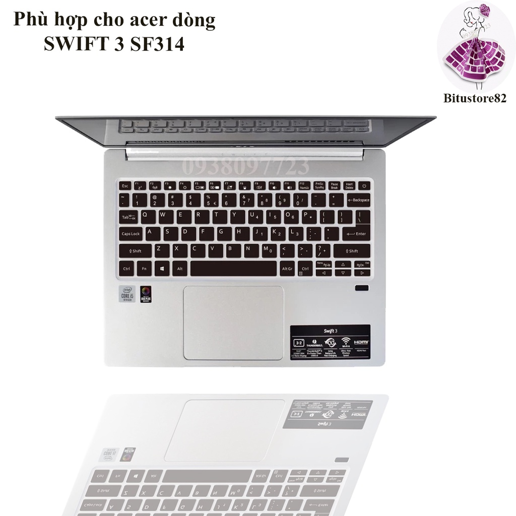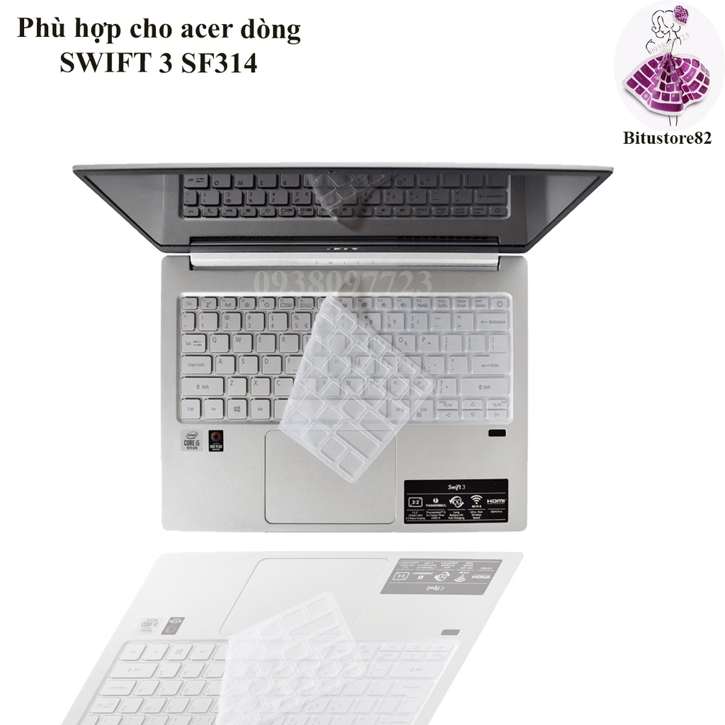 Tên sản phẩm: Miếng silicon cover, che, phủ, bảo vệ bàn phím dành cho laptop Acer Swift 3 SF314
