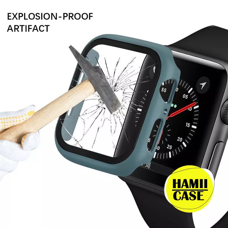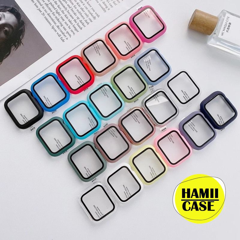 Ốp bảo vệ đồng hồ kèm kính cường lực bảo vệ mặt đồng hồ thông minh 38mm 42mm 40mm 44mm Series 1/2/3/4/5/6