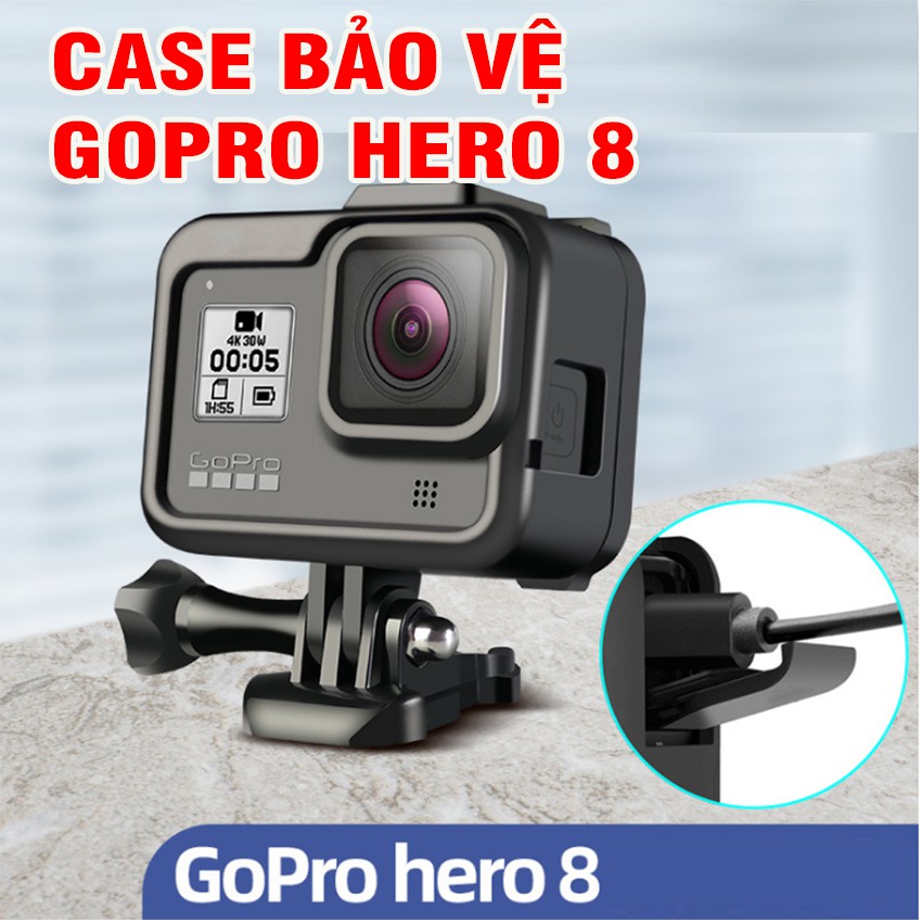 Ốp bảo vệ gopro 8 bằng nhựa chống va đập hỗ trợ gắn đèn chiếu sáng- Được làm từ chất liệu nhựa cứng chất liệu tốt ôm sát chắc chắn với máy.