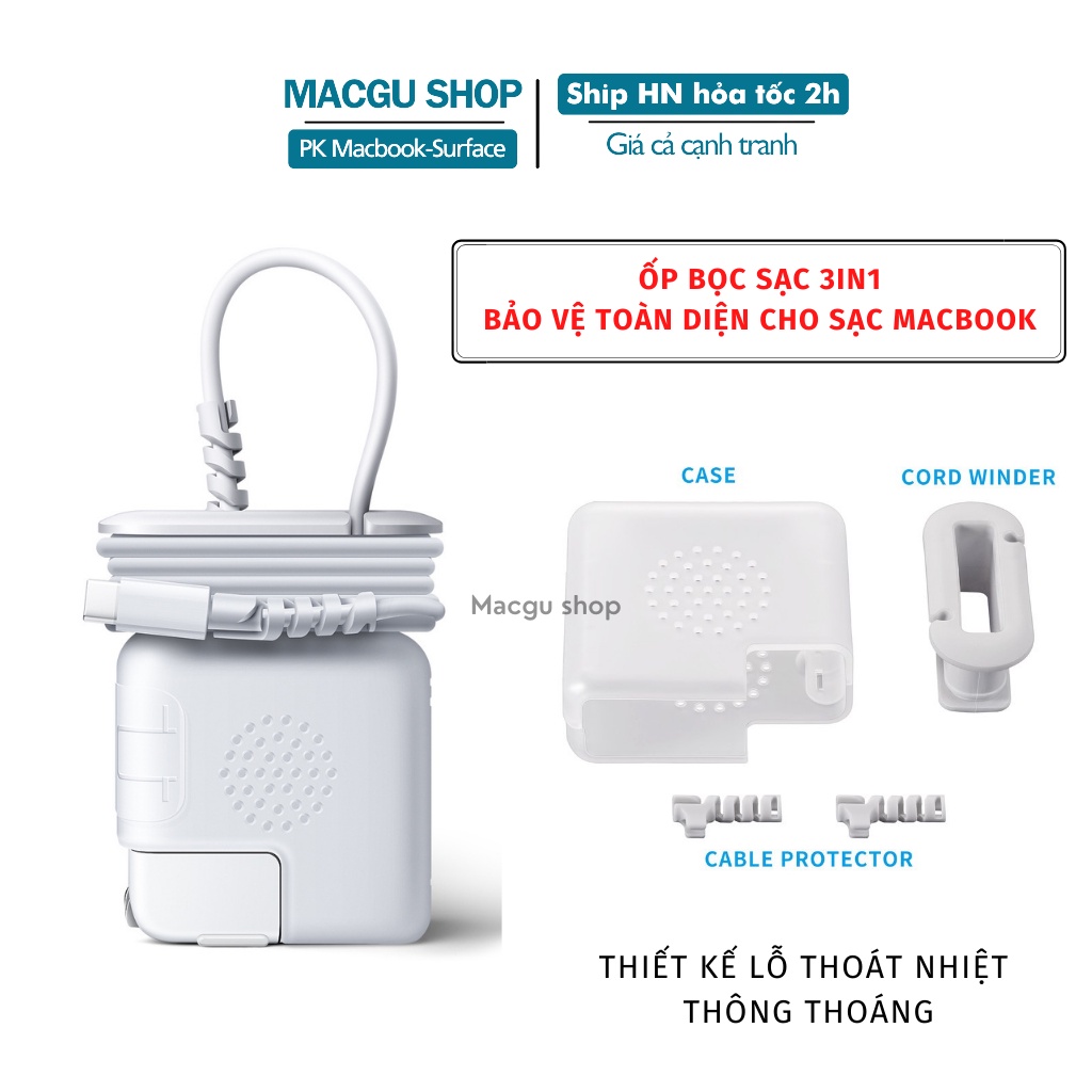 * Ôp bọc bảo vệ toàn diện cho củ sạc và dây sạc của laptopMacbook bao gồm: