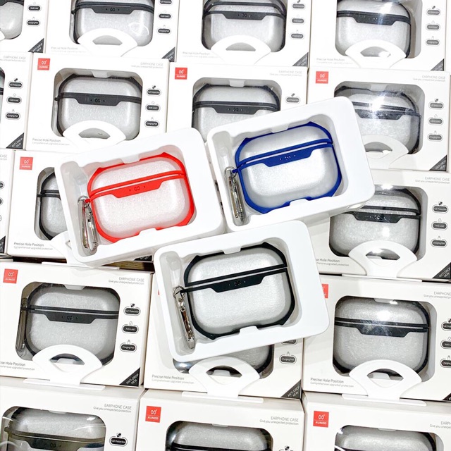 - Thiết kê đơn giản nhưng cực bắt mắt với đường viền bằng silicone có 3 mầu đen , xanh , đỏ . Ôm sát vào viền của Airpod ngăn bụi lọt vào , bao xung quanh chiếc airpod pro chống va đập tuyệt đối.