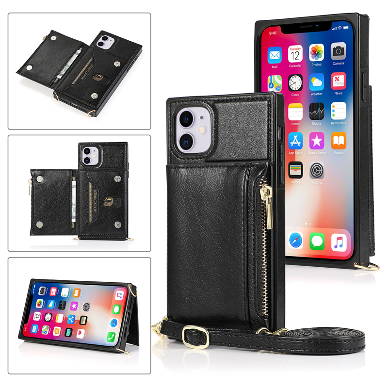 Giới thiệu Ốp điện thoại da kiểu ví có dây kéo khóa gài dây đeo thời trang nữ cho IPhone 12 Mini 11 Pro Xs Max XR SE2020 I8 I7 I6