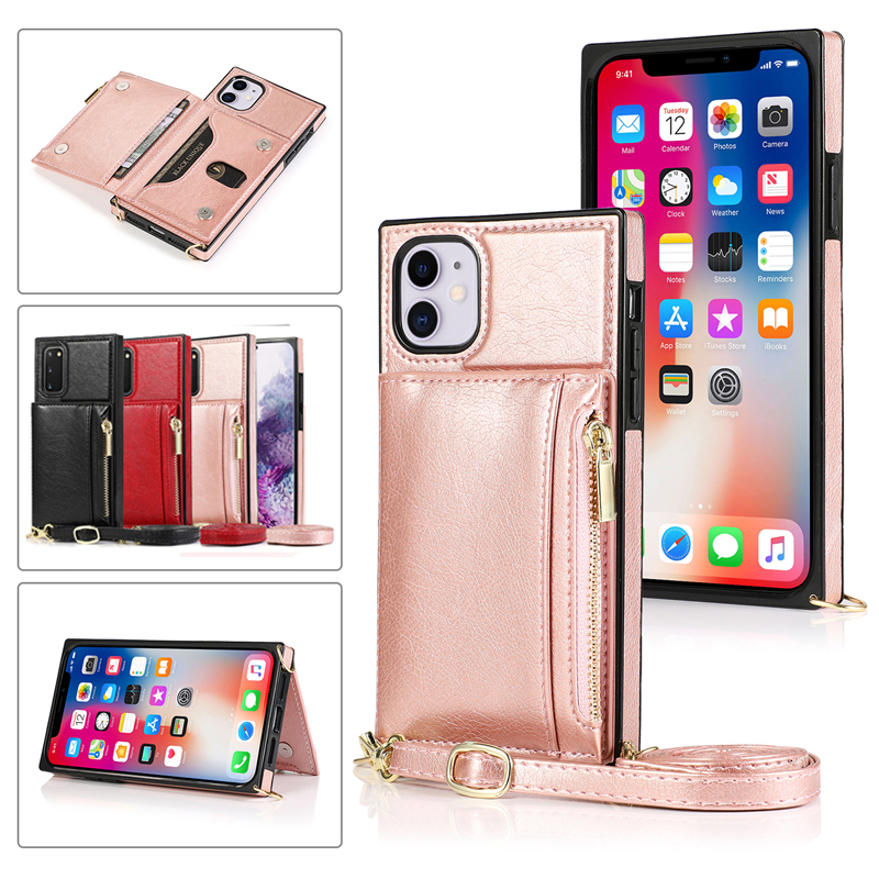 Điện Thoại & Phụ Kiện > Phụ kiện > Túi đựng điện thoại || Ốp điện thoại da kiểu ví có dây kéo khóa gài dây đeo thời trang nữ cho IPhone 12 Mini 11 Pro Xs Max XR SE2020 I8 I7 I6Còn hàng