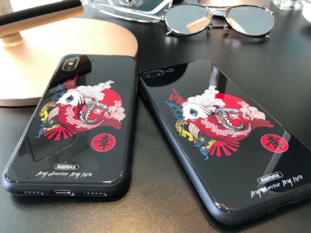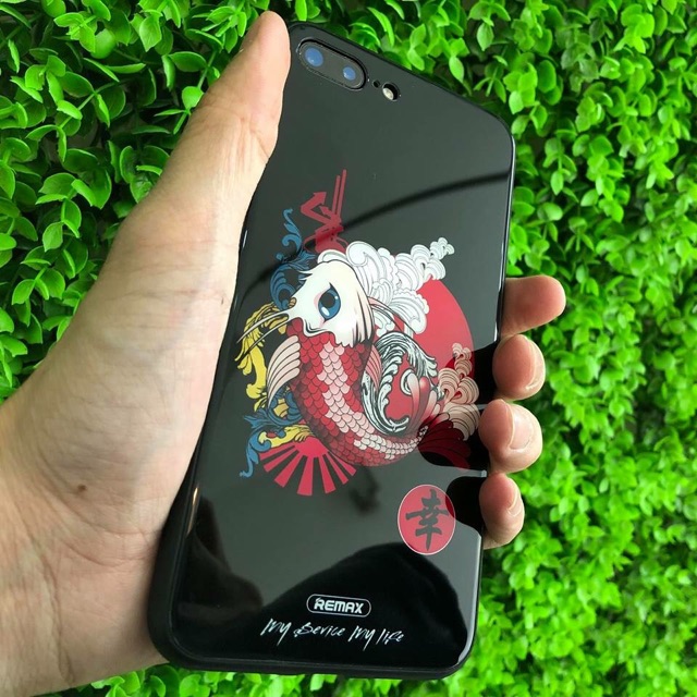 Ốp điện thoại lý ngư vọng nguyệt. Mặt kính cường viền cao su, chính hãng Remax dành cho IpX, Ip7+, Ip8+, Ip6+