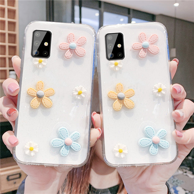 Ốp điện thoại silicon trong suốt hình hoa 3D + dây đeo cho Samsung Galaxy A02S A12 A42 A51 A71 A31 A41 A21S A90 A80