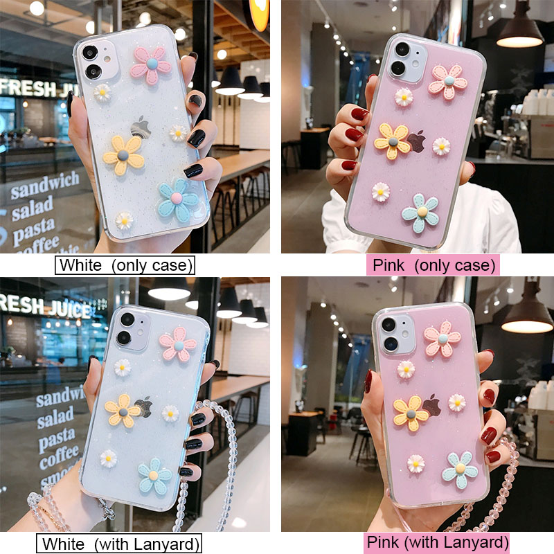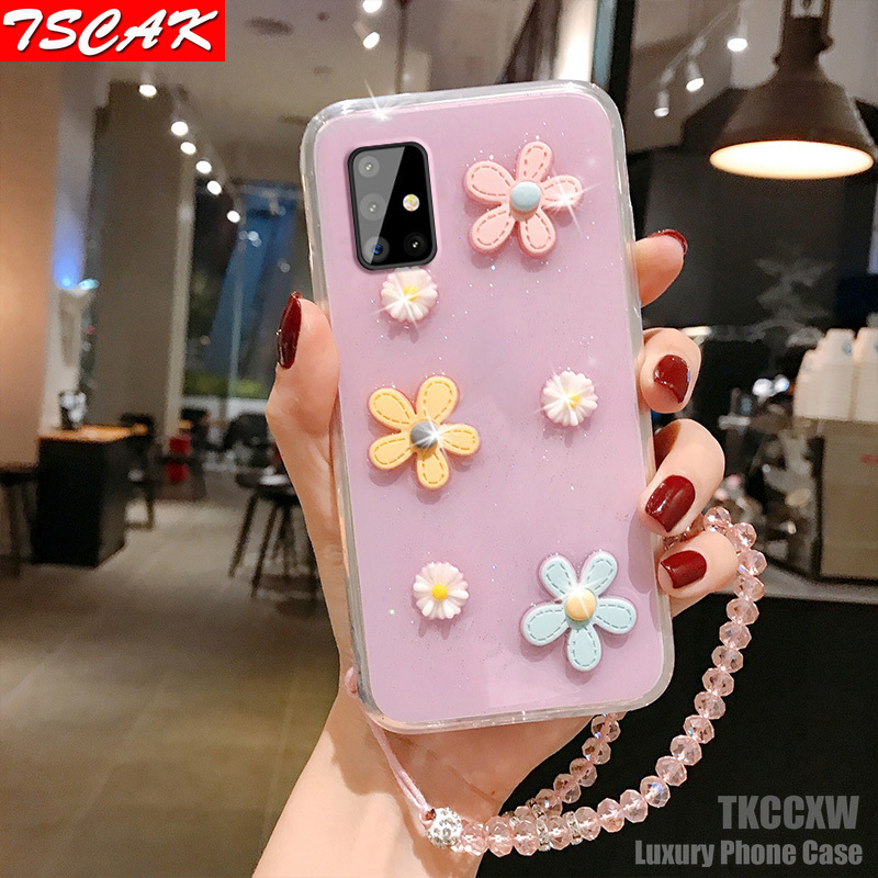 Điện Thoại & Phụ Kiện > Phụ kiện > Dây đeo điện thoại & Móc khóa || Ốp điện thoại silicon trong suốt hình hoa 3D + dây đeo cho Samsung Galaxy A02S A12 A42 A51 A71 A31 A41 A21S A90 A80Còn hàng