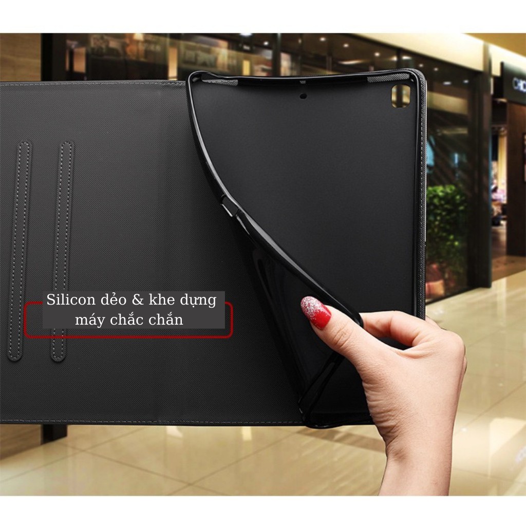+ Mặt trong ốp ipad có khâu 3 rãnh rất tỉ mỉ chống trơn trượt và tủy chỉnh độ nghiêng rất tiện lợi