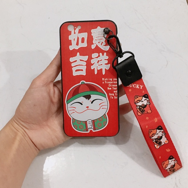 Điện Thoại & Phụ Kiện > Phụ kiện > Dây đeo điện thoại & Móc khóa || Ốp iphone 6,6S Kèm dây đeo mèo thần tàiCòn hàng