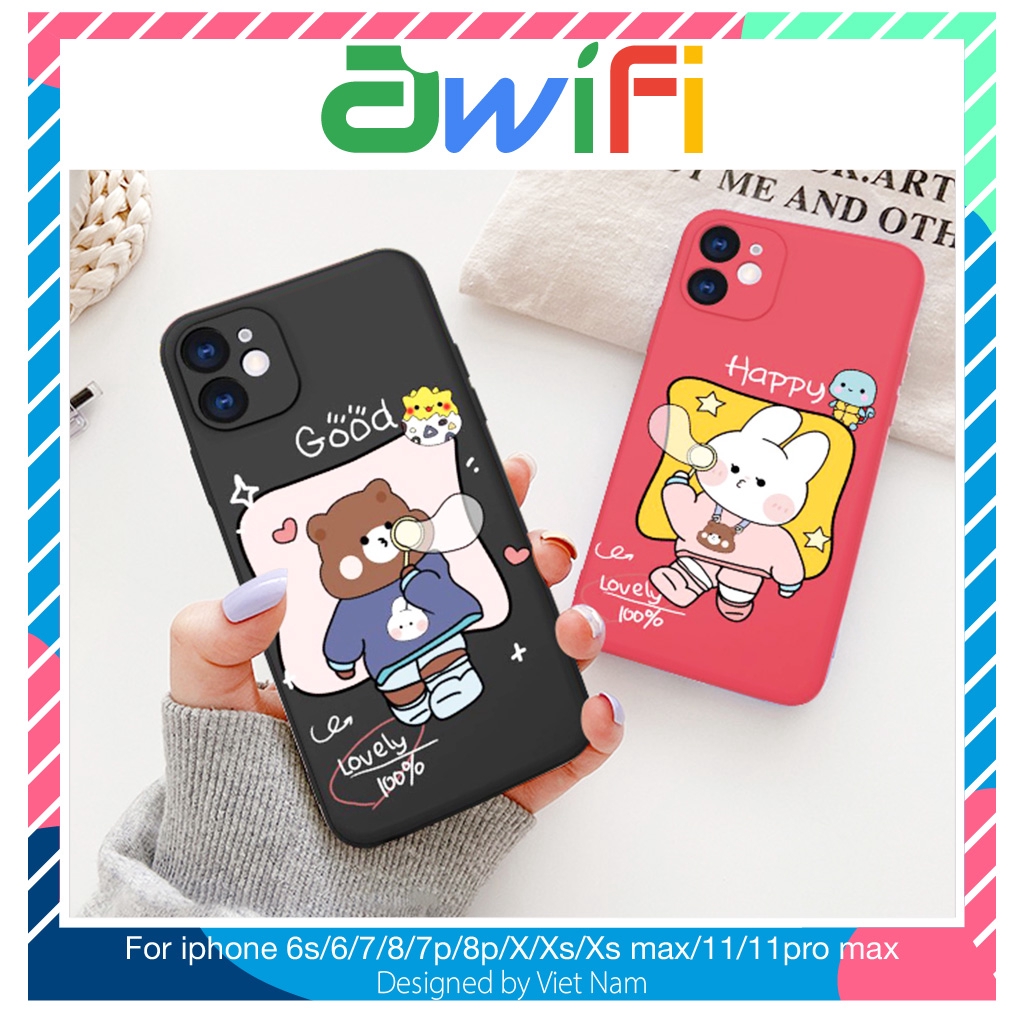 Ốp iphone - Ốp lưng dẻo bảo vệ camera gấu thỏ good & lucky 6plus/7/8/7plus/8plus/x/xs/xs max/11/11promax-Awifi Case X3-3