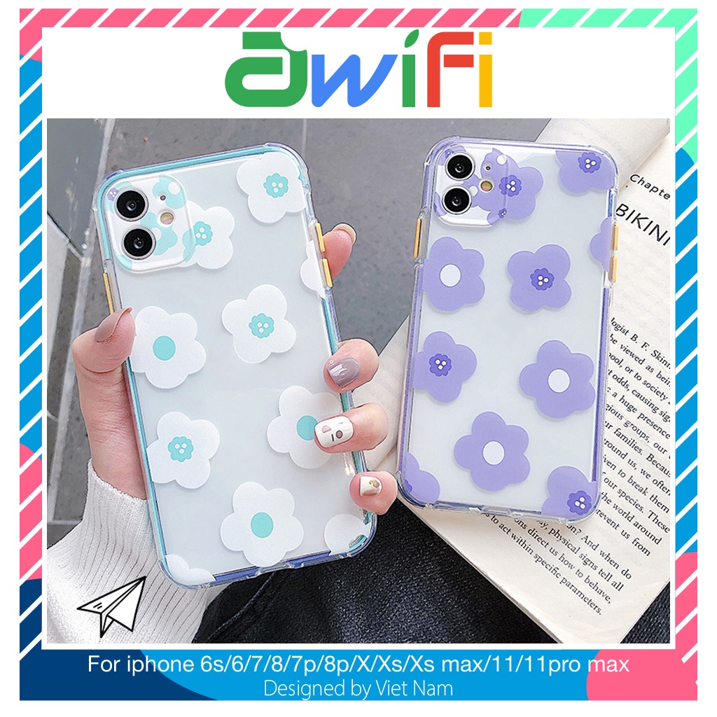 Điện Thoại & Phụ Kiện > Phụ kiện > Vỏ bao, Ốp lưng & Miếng dán > Vỏ bao, Ốp lưng & Miếng dán điện thoại || Ốp iphone - Ốp lưng Hoa nhí xanh tím trong 4 góc 6s/6splus/7/8/7plus/8plus/x/xs/xsmax/11/11promax - Awifi Case V5-1Còn hàng