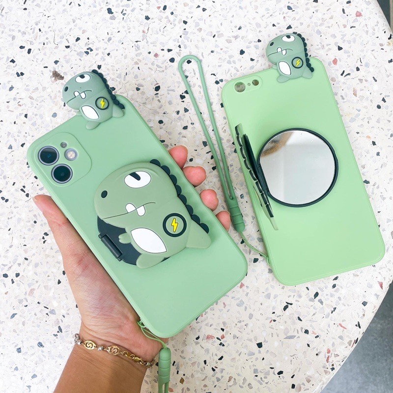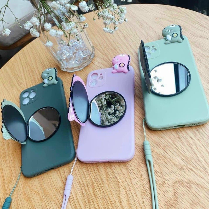 Ốp Iphone - Ốp lưng Iphone thú leo khủng long gương kèm móc đeo 7plus/ 8plus/ X/ Xs/Xsmax/ 11/11promax/12/12pro/12promax