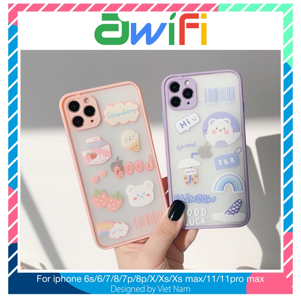 Điện Thoại & Phụ Kiện > Phụ kiện > Vỏ bao, Ốp lưng & Miếng dán > Vỏ bao, Ốp lưng & Miếng dán điện thoại || Ốp iphone - Ốp lưng viền nhám Gấu Strawberry Rainbow 6s/6splus/7/8/7plus/8plus/x/xs/xsmax/11/11promax-Awifi Case S1-9Còn hàng