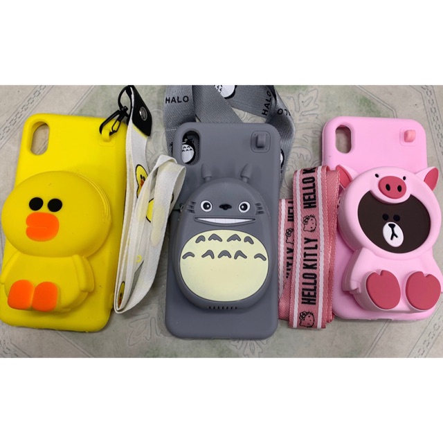 Ốp lưng dẻo silicon màu hình thú nổi kiểu ví đựng tai nghe thời trang sang trọngỐp dẻo ôm khít bảo vệ toàn bộ mặt sau của máy chống va đập toàn diện