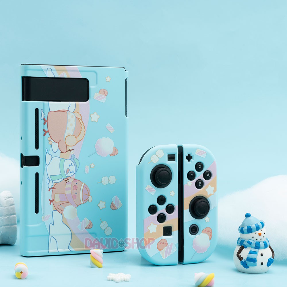 Ốp lưng + case Joy-Con chủ đề Gà Con Chơi Tuyết dẻo cao cấp hãng Geekshare cho Nintendo Switch