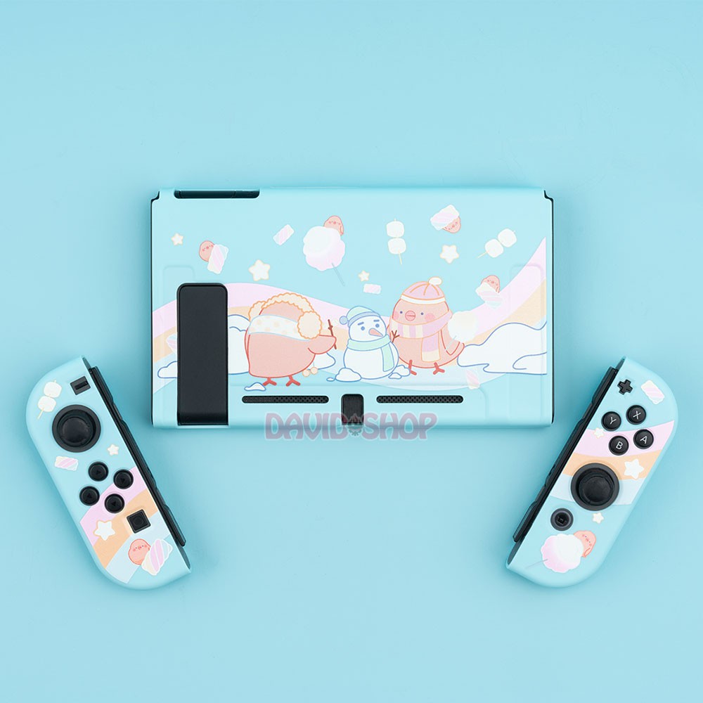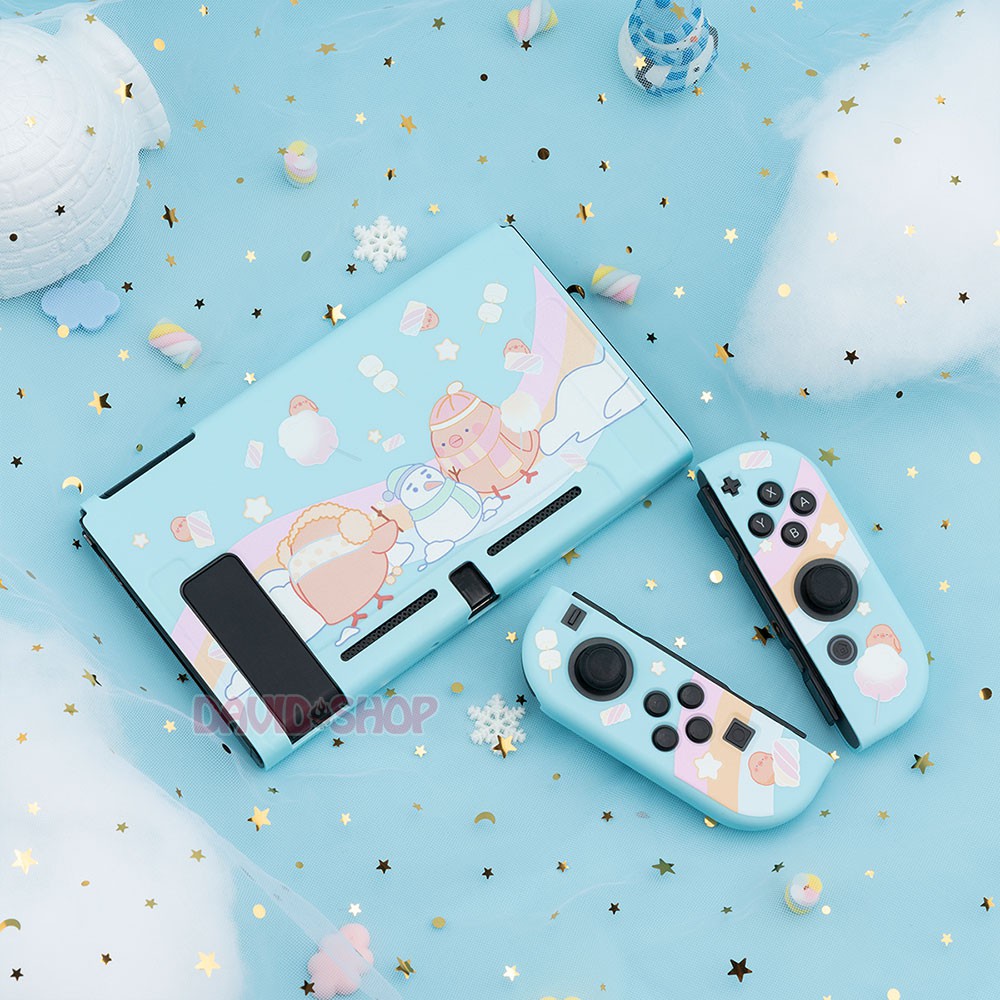 Bộ ốp lưng thân máy + case Joy-Con bằng nhựa TPU dẻo cao cấp của hãng Geekshare cho Nintendo Switch, chủ đề Gà Con Chơi Tuyết, thiết kế cực kỳ đáng yêu.🔯 Tương thích: Nintendo Switch