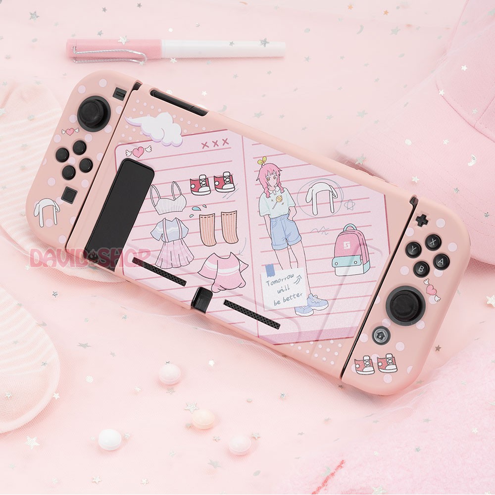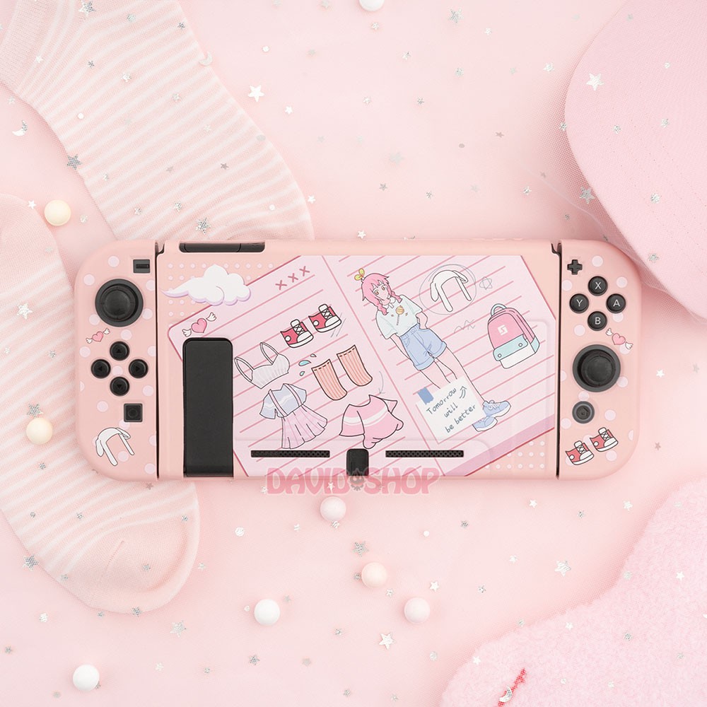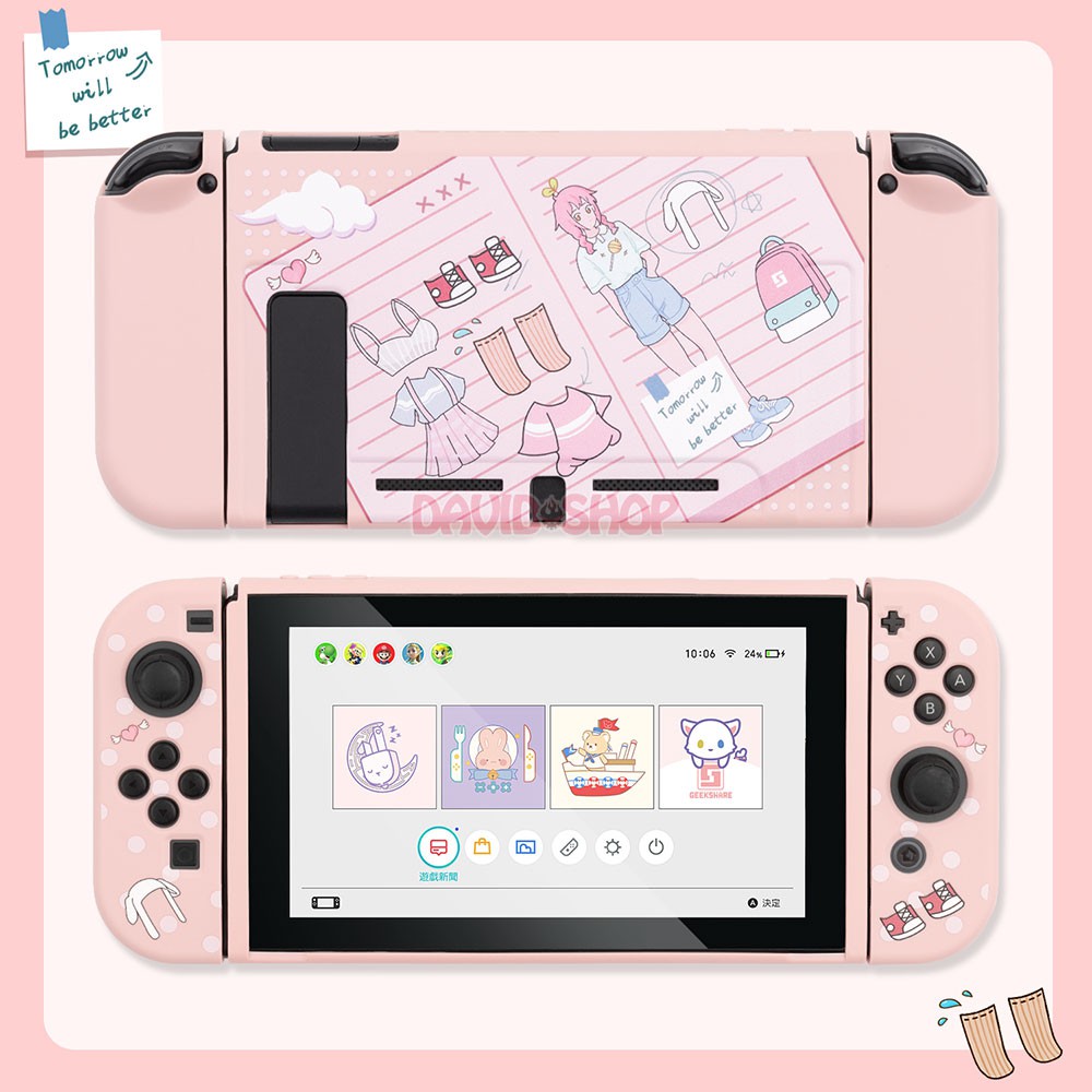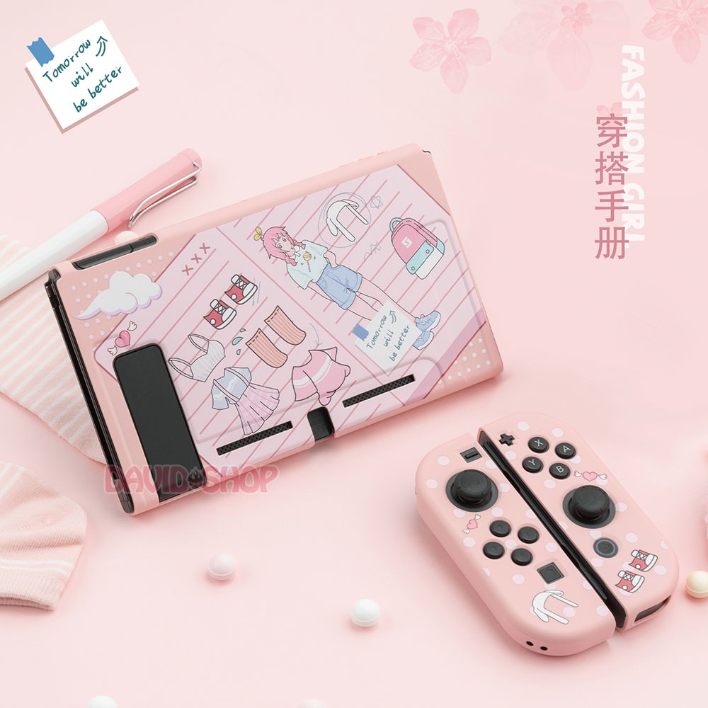 Bộ ốp lưng thân máy + case Joy-Con bằng nhựa TPU dẻo cao cấp của hãng Geekshare cho Nintendo Switch, chủ đề Fashion Girl, thiết kế cực kỳ đáng yêu.🔯 Tương thích: Nintendo Switch