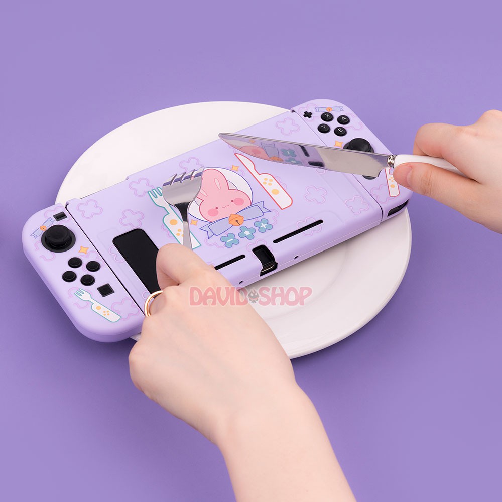 Ốp lưng + case Joy-Con chủ đề Thỏ Đeo Nơ Dùng Bữa nhựa TPU dẻo cao cấp hãng Geekshare cho Nintendo Switch