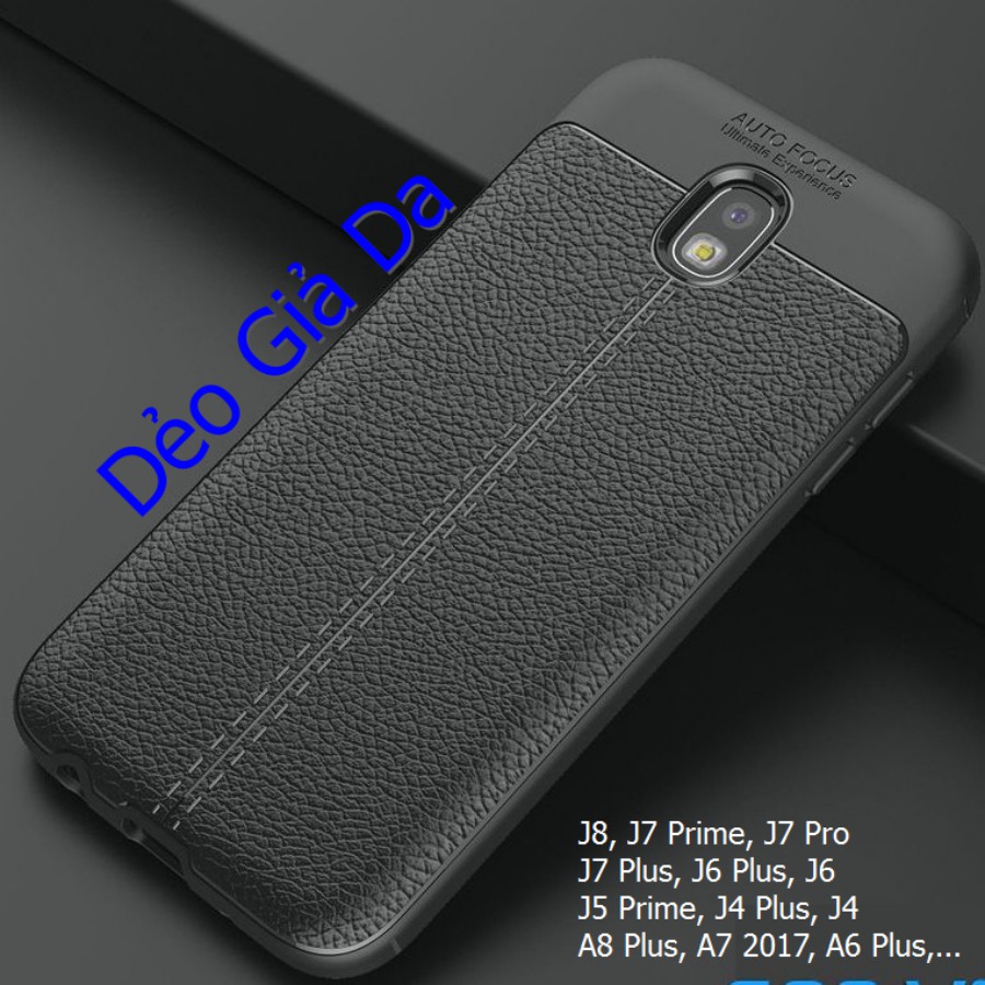 Ốp Lưng Da Màu Đen Samsung J8, J7 Pro - Prime - Plus, J6, J5, J4, J2, A8 Plus, A7 2017, A6 Plus- Ốp lưng điện thoại giả da Auto Focus. Ốp được làm bằng silicon giả da cao cấp rất mềm và dẻo, giống da thật, không mờ và ố vàng theo thời gian. Ốp siêu mỏng, ôm khít máy, tạo cảm giác chắc tay khi sử dụng.