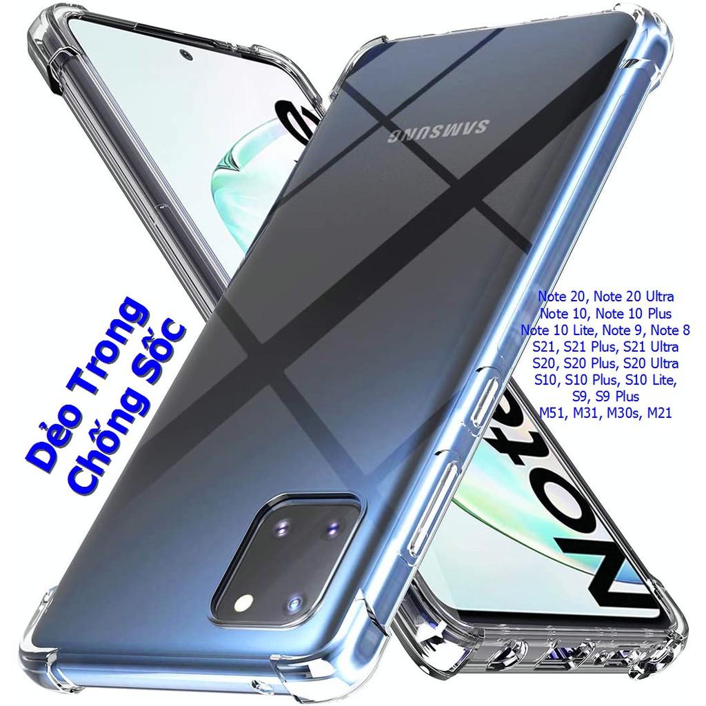Ốp Lưng Dẻo Trong Chống Sốc Samsung M62 M51 M31 M30 M21, Note 20 10 Pro 9 8, S21 FE, S20 Ultra, S10 Lite, S9 Plus,...- Với thiết kế chống sốc khi điện thoại bị rớt không bị móp góc cạnh điện thoại