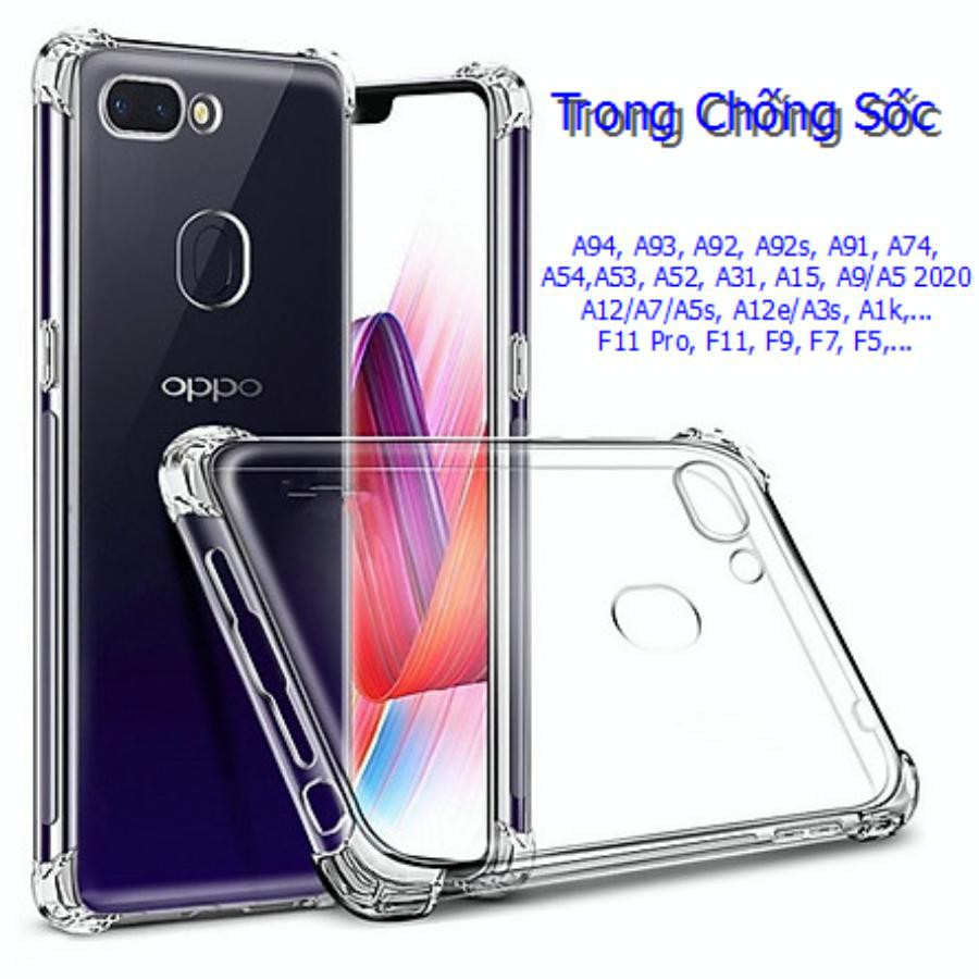 Ốp Lưng Dẻo Trong Chống Sốc Oppo A95 A94 A93 A92 A92s A91 A74 A55 A54 A53 A52 A31 A16 A15 A12 A12e A7 A5s F11 Pro F9 F7