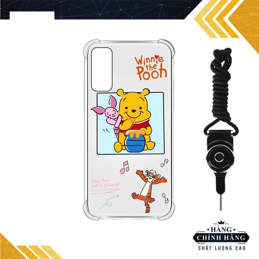 Ốp lưng đủ dòng Vivo S1 Pro/V17/V20/Y12/Y30/Y91/...chống sốc trong in hình Gấu Pooh - Tặng kèm dây đeo điện thoại