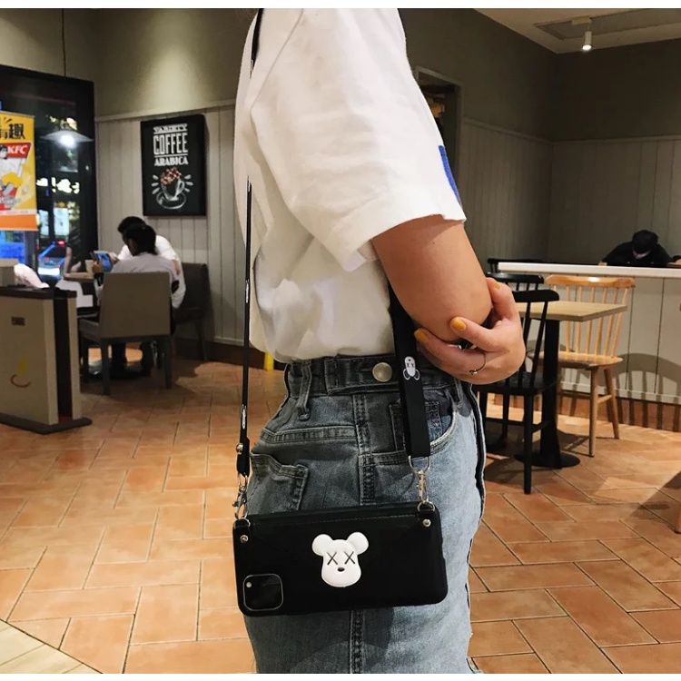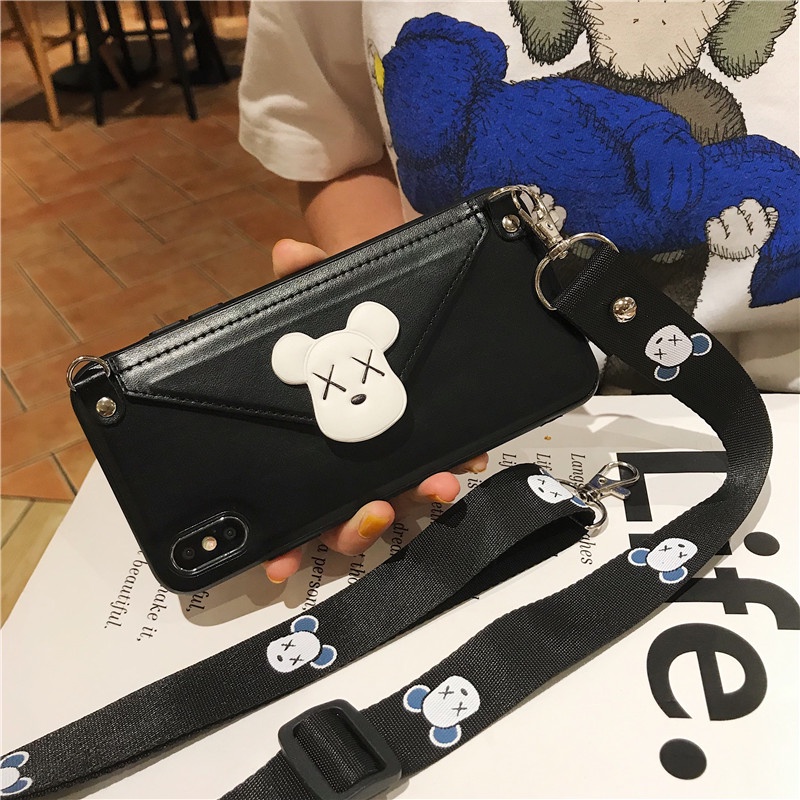 Ốp Lưng Iphone gấuKaws Ví Da Kèm Dây Đeo Ngăn Đựng Tiền Thẻ Atm 7plus x xsmax 11 11promax 12 12pro 12promax 13 13promax