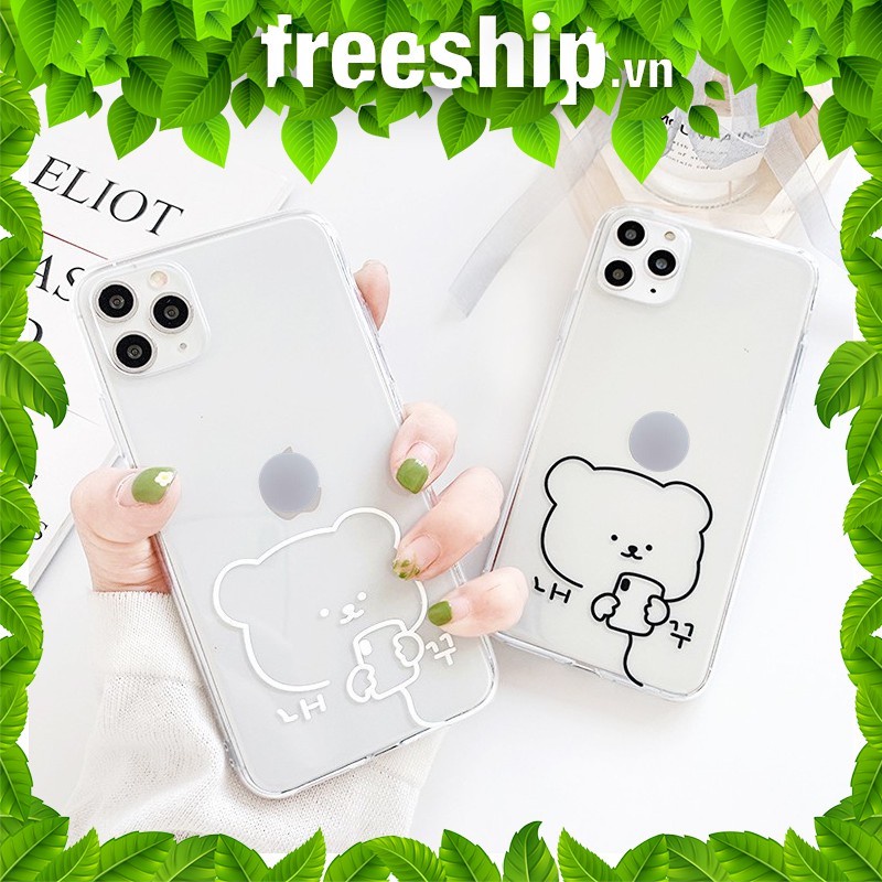 Ốp lưng iphone trong siêu dẻo Gấu Selfie cho IPhone 11/11Pro/11pro Max X XR XS XS MAX /6 7 8 Plus SE t19