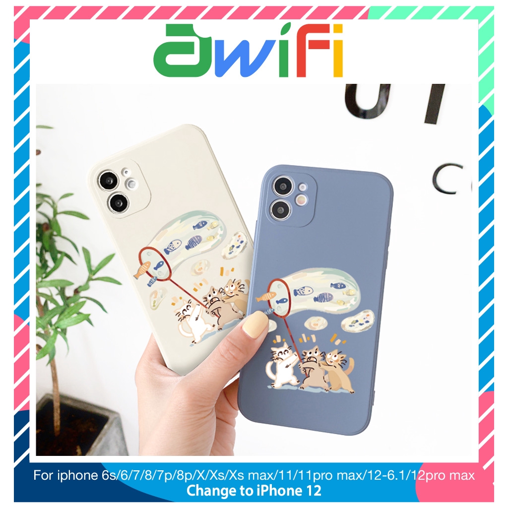 Giới thiệu Ốp lưng iphone vuông mèo vợt cá 5s/6/6plus/6s/6splus/7/7plus/8/8plus/x/xr/xs/11/12/pro/max/plus/promax - Awifi D4-2