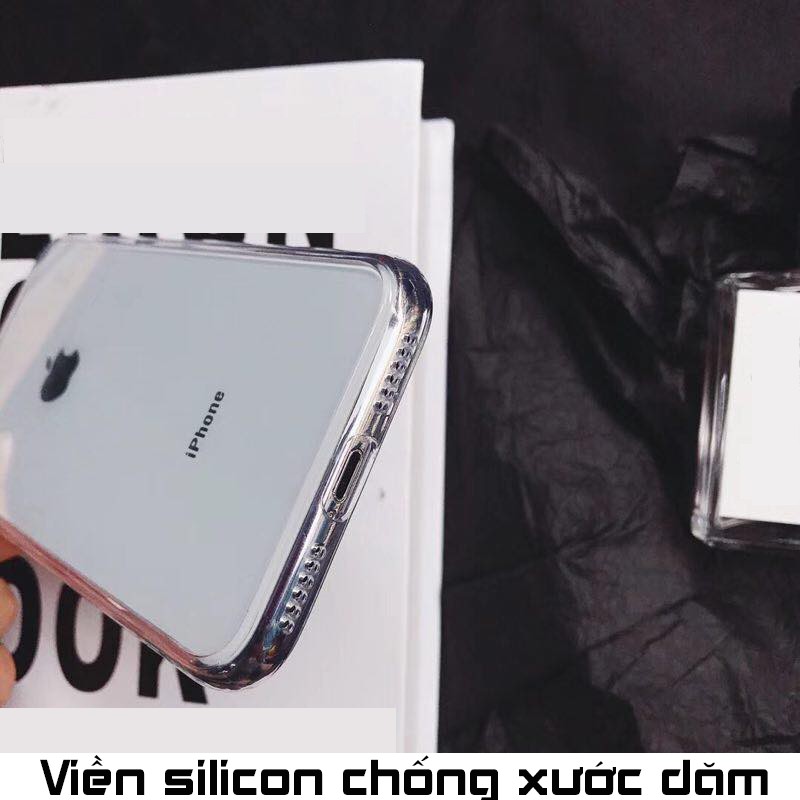 Ốp lưng kính cường lực, viền silicon chống va đập trong suốt