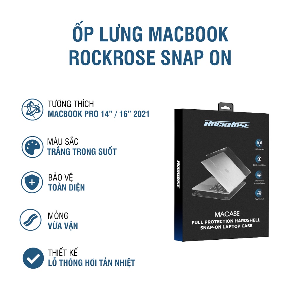 ỐP LƯNG MACBOOK ROCKROSE SNAP ON - DÀNH CHO MACBOOK PRO 14”/16” 2021 CHẤT LIỆU NHỰA PC TRONG SUỐT BẢO VỆ TOÀN DIỆNThương hiệu: Rockrose