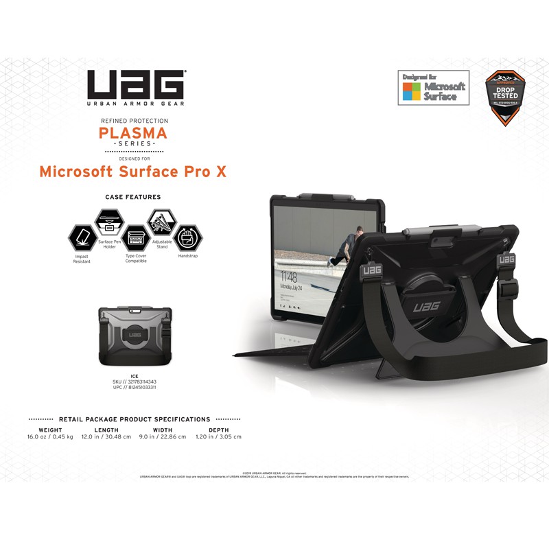 Ốp lưng UAG cho Microsoft Surface Pro X có thể nói là phụ kiện đáng trang bị cho chiếc Surface Pro giá trị của bạn. Sản phẩm đáp ứng các tiêu chuẩn thử nghiệm thả quân sự (MIL STD 810G 516.6), bảo vệ tuyệt vời cho máy tính xách tay của bạn tránh bị hư hại như trầy xước, va đập, thấm nước và nhiều hơn nữa.