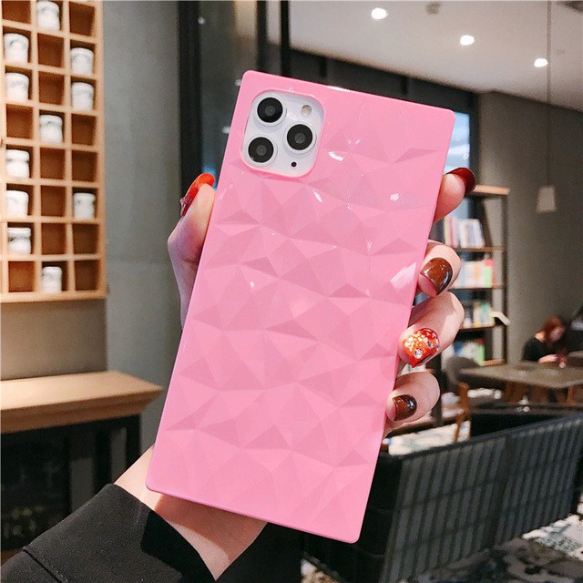Ốp lưng vuông họa tiết vân kim cương dành cho iPhone 11 11pro 11pro max XsMax XS X 6 6S 7 8 Plus