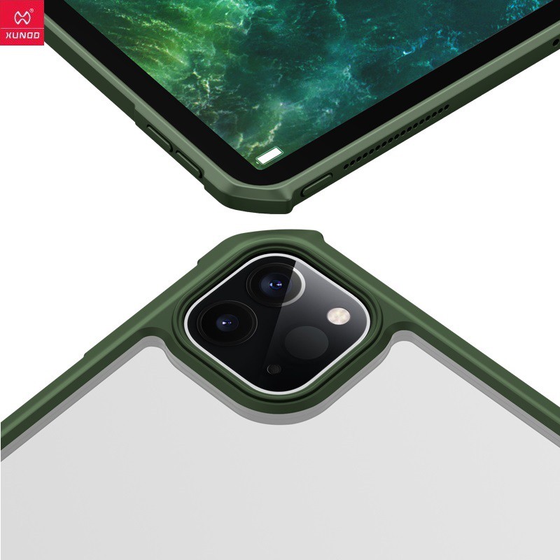 Ốp lưng XUNDD chống sốc cho iPad Pro 12.9/11.0 inch 2018/2020/2021/Air 4/10.9/10.5/Air 3/10.2/Gen 7/8/9/9.7 2017/2018/Air 2/Pro 9.7 inch/Mini 4/5/6 hàng cao cấp lưng trong suốt viền silicone màu chống sốc, chống va đập. Ốp lưng Thiết kế mạnh mẽ, lịch lãm, sang trọng với sự kết hợp chất liệu TPU và PC cao cấp không ảnh hưởng đến sức khỏe người dùng. Với mặt lưng từ nhựa PC trong suốt giữ nguyên màu máy. Viền nhựa TPU mềm màu sắc hài hòa, tạo điểm nhấn ấn tượng. Các chi tiết thiết kế tinh tế, sắc sảo và các góc ốp iPad Pro được thiết kế đặc biệt chống chịu lực va đập tốt bảo vệ iPad luôn như mới.- Ốp lưng XUNDD iPad Pro 11.0 inch 2018 dùng chung với iPad Pro 11.0 inch 2020 và iPad Pro 11.0 inch 2021