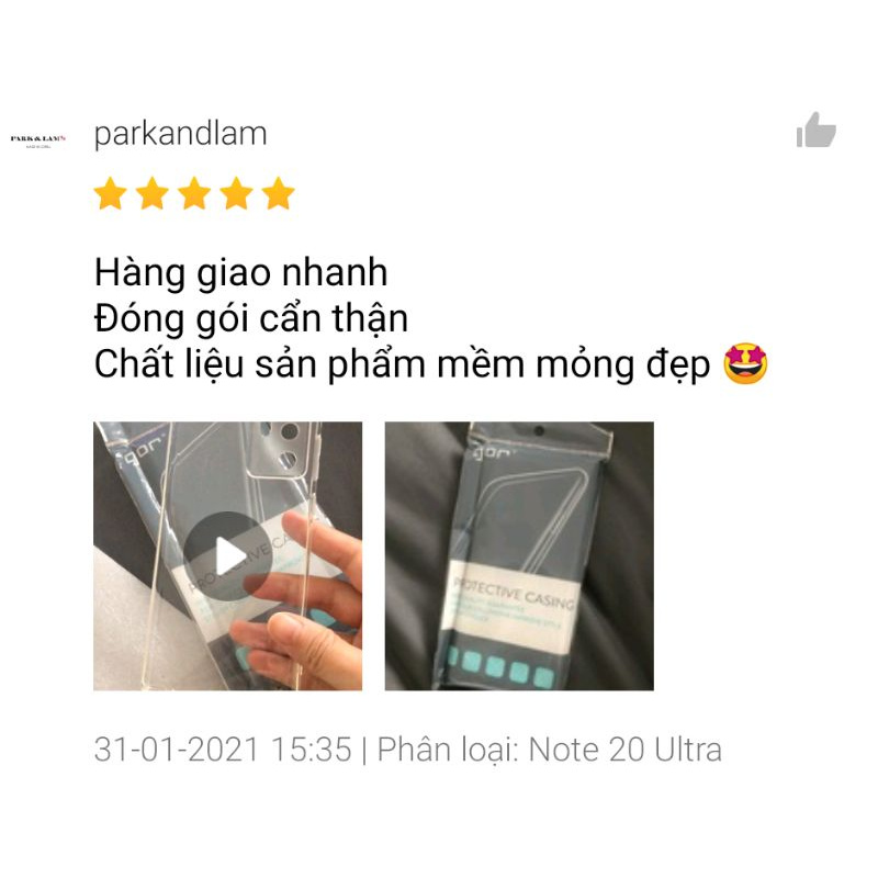 Giới thiệu Ốp Samsung Note 20 / 20 Ultra hãng Gor cao cấp trong suốt, siêu dẻo, dày 0.4mm siêu mỏng, siêu nhẹ, siêu bền