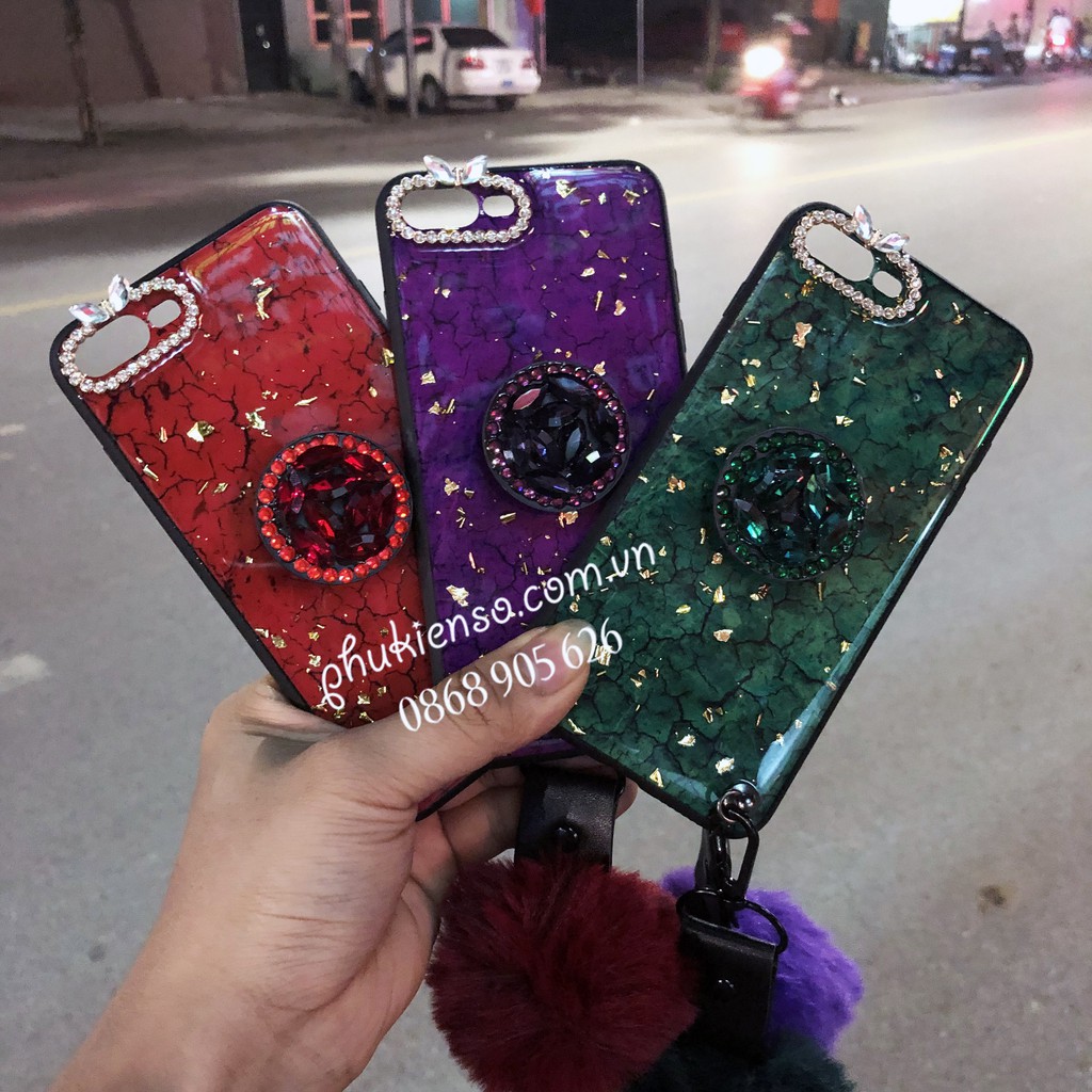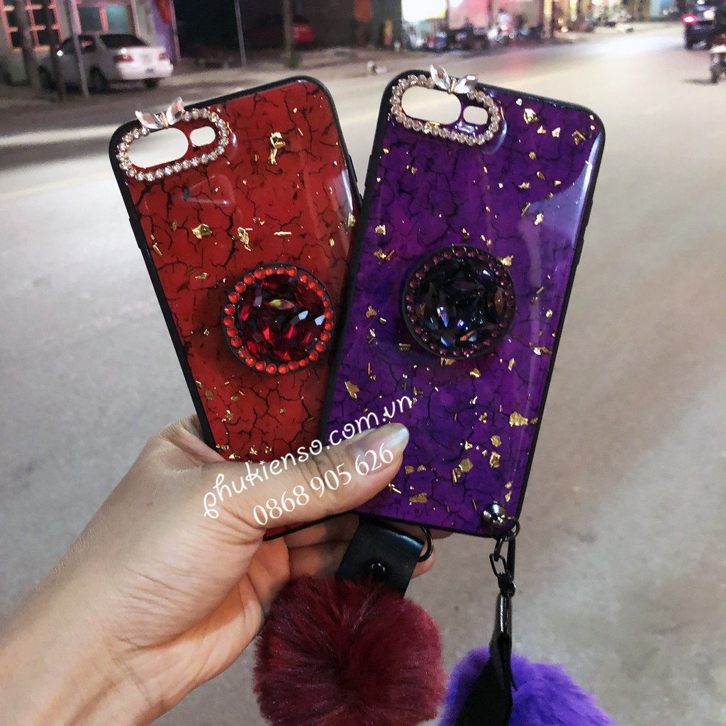 Ốp Sang Chảnh Kèm Giá Đỡ Điện Thoại Xem Phim+ Cục Bông + Dây Đeo Cho Samsung + Oppo ( Ảnh thật)