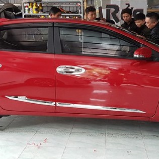 Sản phẩm được dán cố định lên hông xe bằng keo 3M, bề mặt mạ crom của bộ ốp hông làm tăng trính trang trọng cho tổng thể chiếc xe Vios.