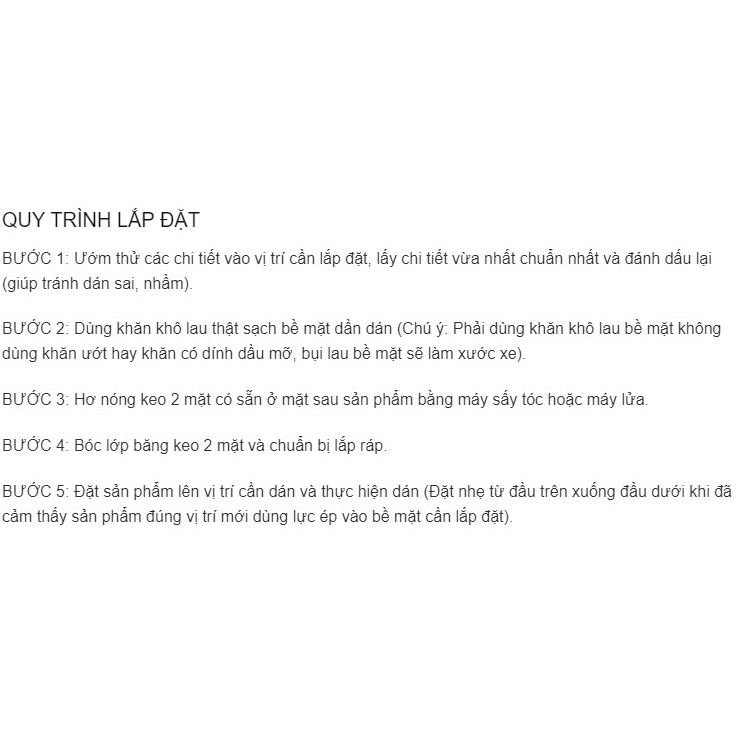 Được thực hiện qua 5 bước lắp ráp.Quý khách sẽ yên tâm về đồ ốp mạ sẽ không bị bong tróc theo thời gian.
